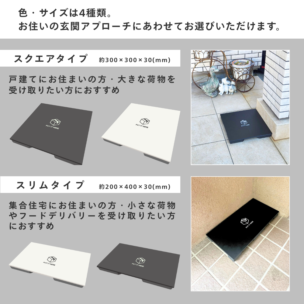 地面への直置きを防ぐおしゃれな置き配トレーです。