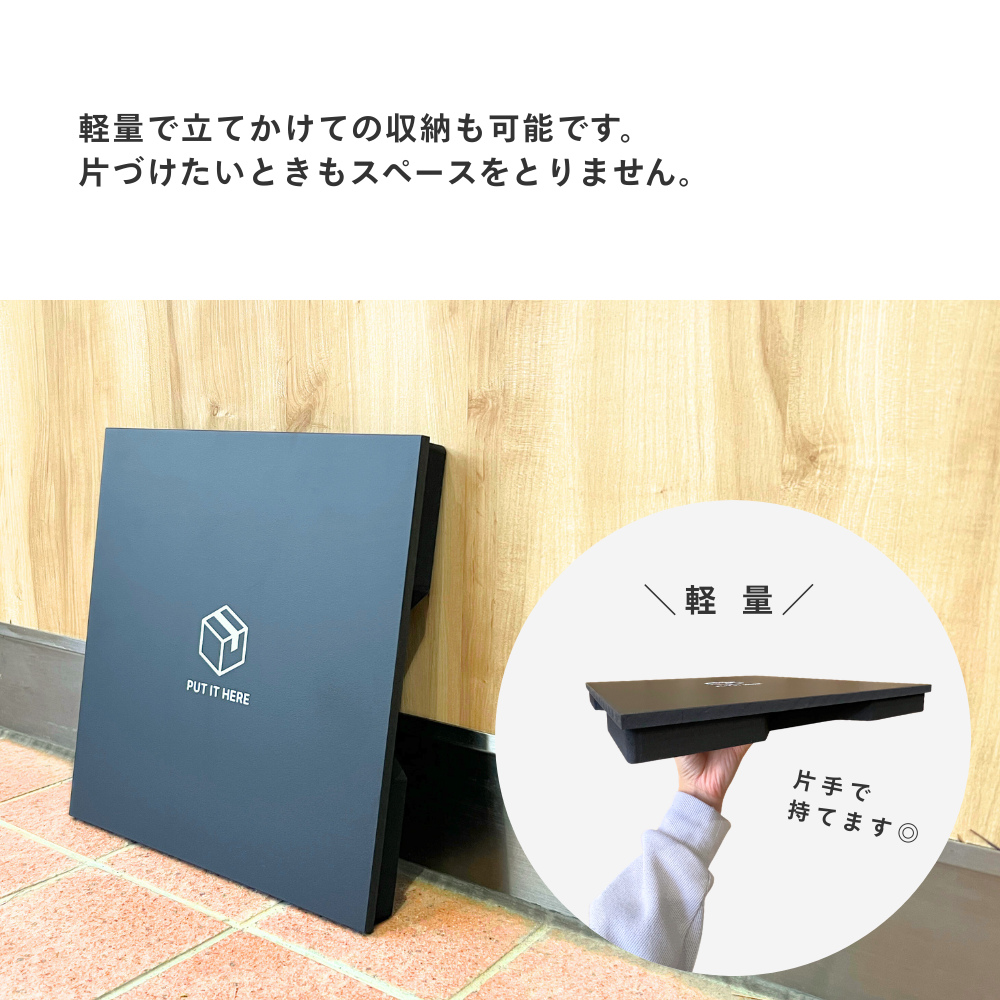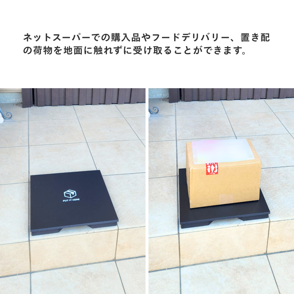 地面への直置きを防ぐおしゃれな置き配トレーです。