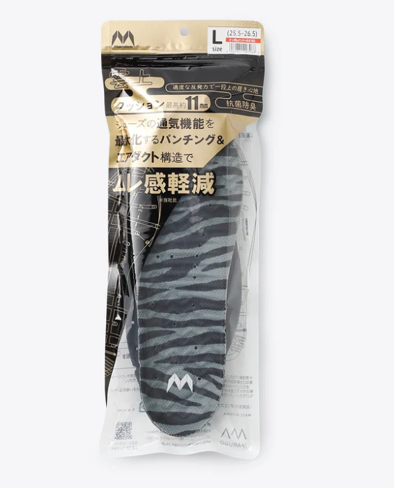反発力と柔軟性のバランスにこだわった、厚さ最大11mmのクッション性に優れたインソール「マンダムインソール#102」。