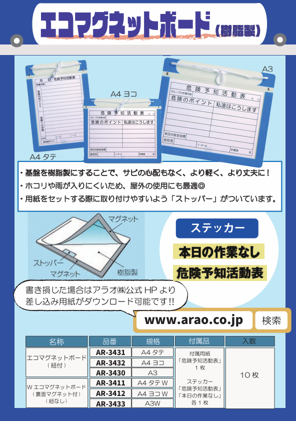 ●付属品:「危険予知活動表」用紙、「危険予知活動表」ステッカー、「本日の作業なし」ステッカー 各1枚