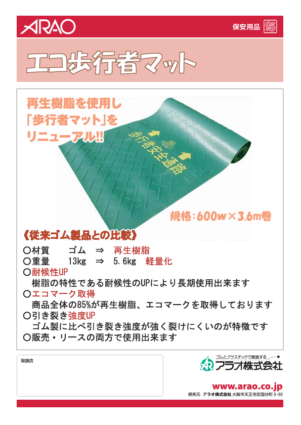 ●マット両端部には「歩行者安全通路」の印字つきです。