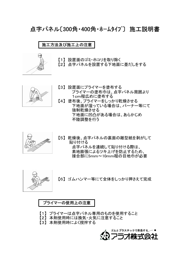 ●点字パネル貼り付けの際は、必ずプライマーでの下地処理を行ってください。