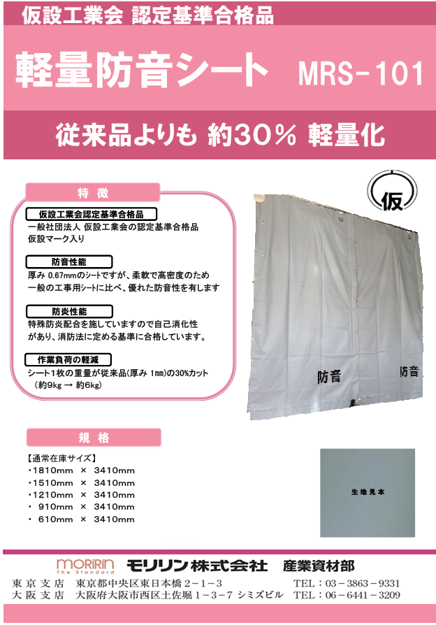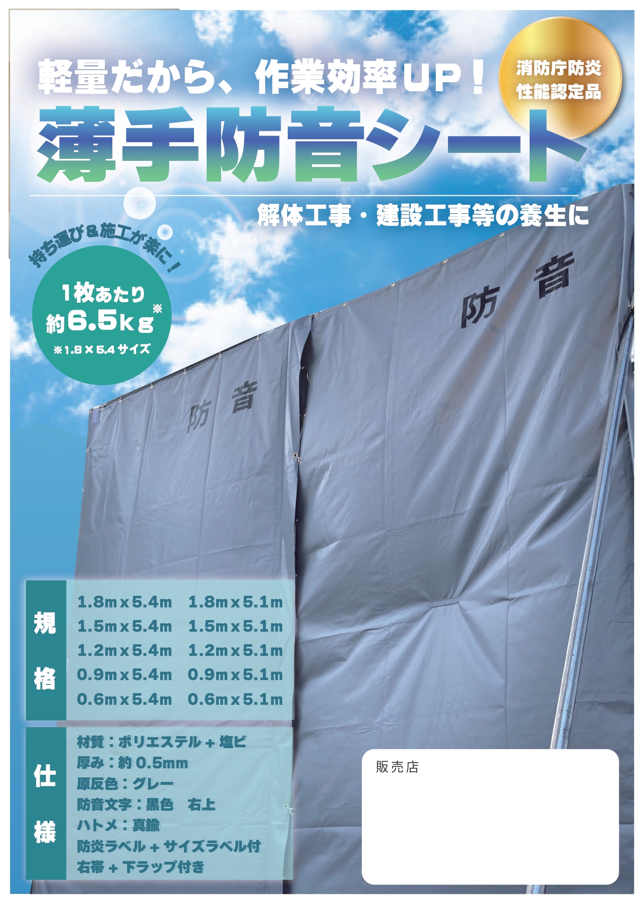 【仮設工業会認定基準合格品】軽量防音シート 厚... 仮設工業会認定基準合格品です。