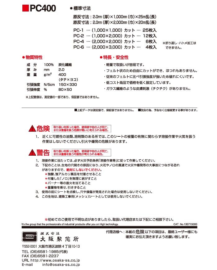 ・近くに可燃性の油類、溶剤類のある場所では、このシートの被覆の有無に関わらず。溶接作業や火気を扱う作業はしないでください。