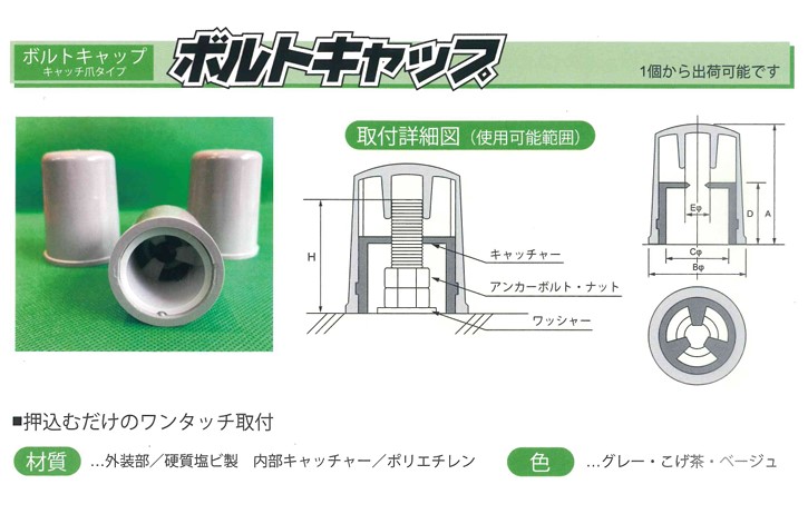 ・街路灯、信号機、防音壁などの固定用アンカーボルト部の保護キャップです。