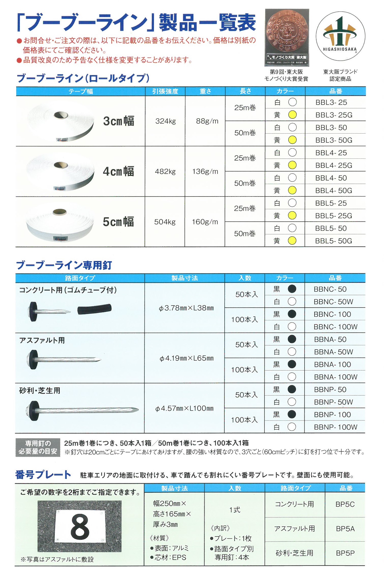 スプレーや塗装よりラク!必要なときにすぐ設置・すぐ撤去できる仮設用ラインテープ(釘別売り)です。