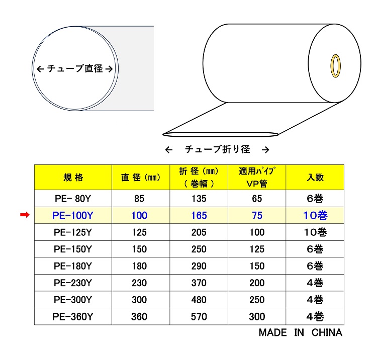 ポリエチレンチューブはPE袋に加工する前の原反で筒形状の製品です。