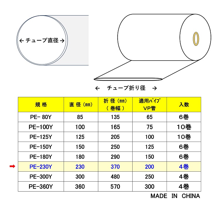 ポリエチレンチューブはPE袋に加工する前の原反で筒形状の製品です。