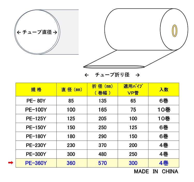 ポリエチレンチューブはPE袋に加工する前の原反で筒形状の製品です。