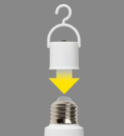 普段は電球として照明器具に取り付けし、停電時や災害時に取り外して充電式のライトとして電球単体で使用することができます。一般的なE26口金の電球と取り換えるだけで使用可能。点灯中に災害などで停電が発生しても、停電を感知して内蔵充電池で自動点灯します。