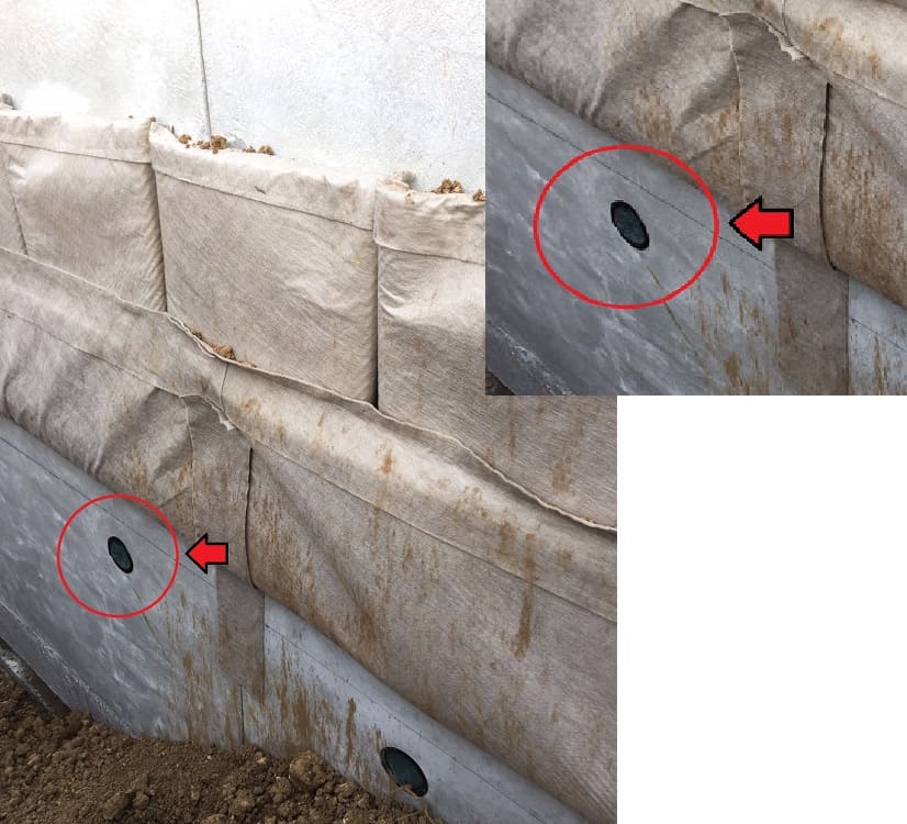 擁壁の水抜きパイプからの土砂の流出を防止するフィルターです。