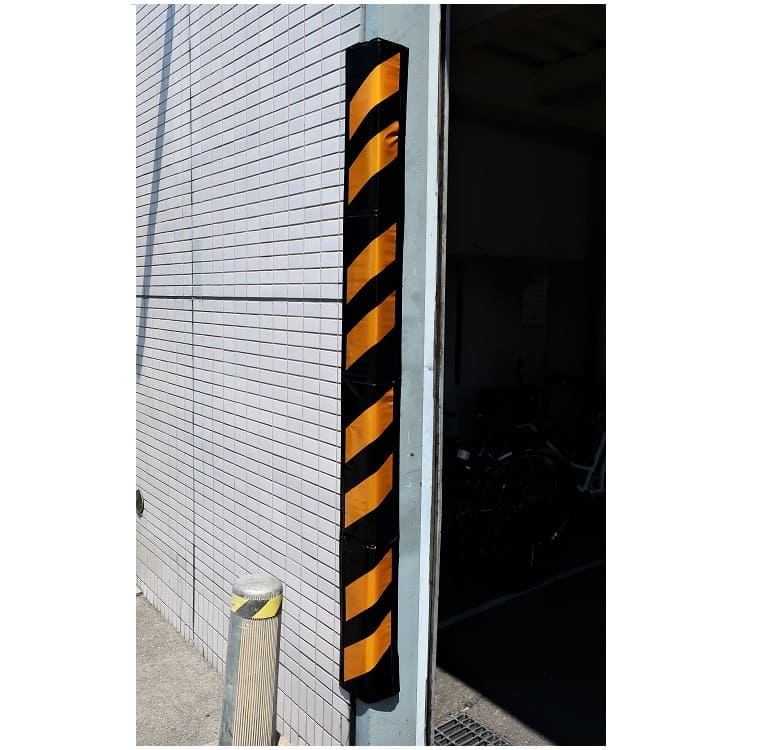 工事現場の仮囲いの角や出入り口のコーナー養生に最適です。裏面に