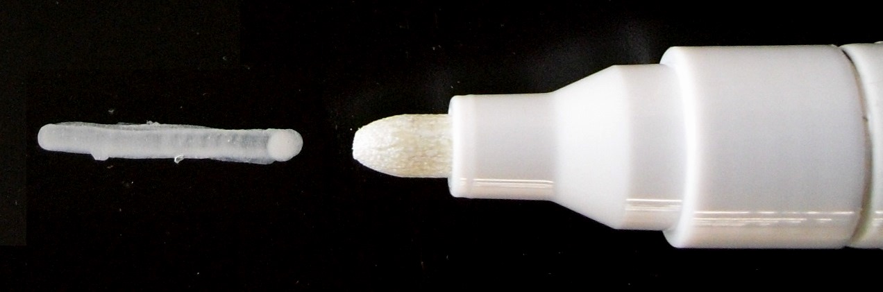 ペン先も市販のペイントマーカーより高耐久なものを使用しているので、インクがなくなる前にペン先がつぶれる様な事もなく、最後までインクを使い切る事が可能です。