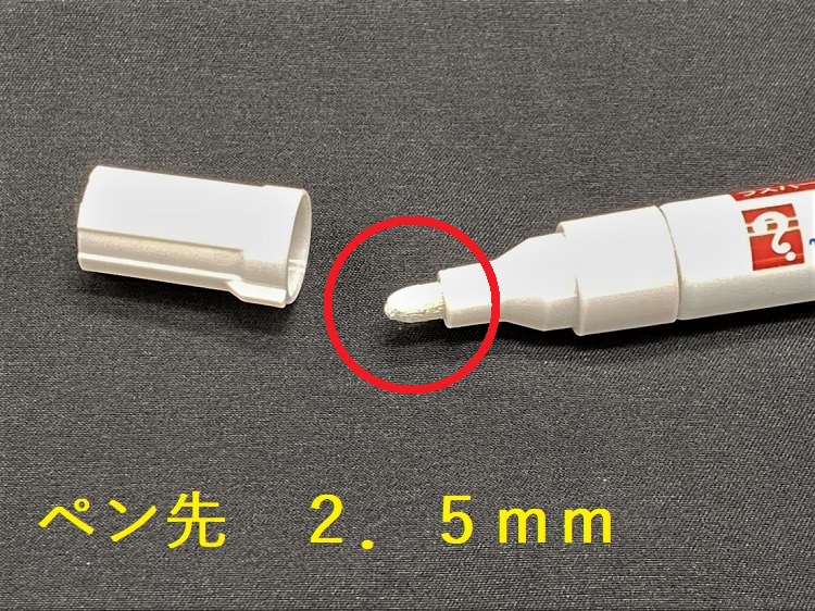ペン先も市販のペイントマーカーより高耐久なものを使用しているので、インクがなくなる前にペン先がつぶれる様な事もなく、最後までインクを使い切る事が可能です。