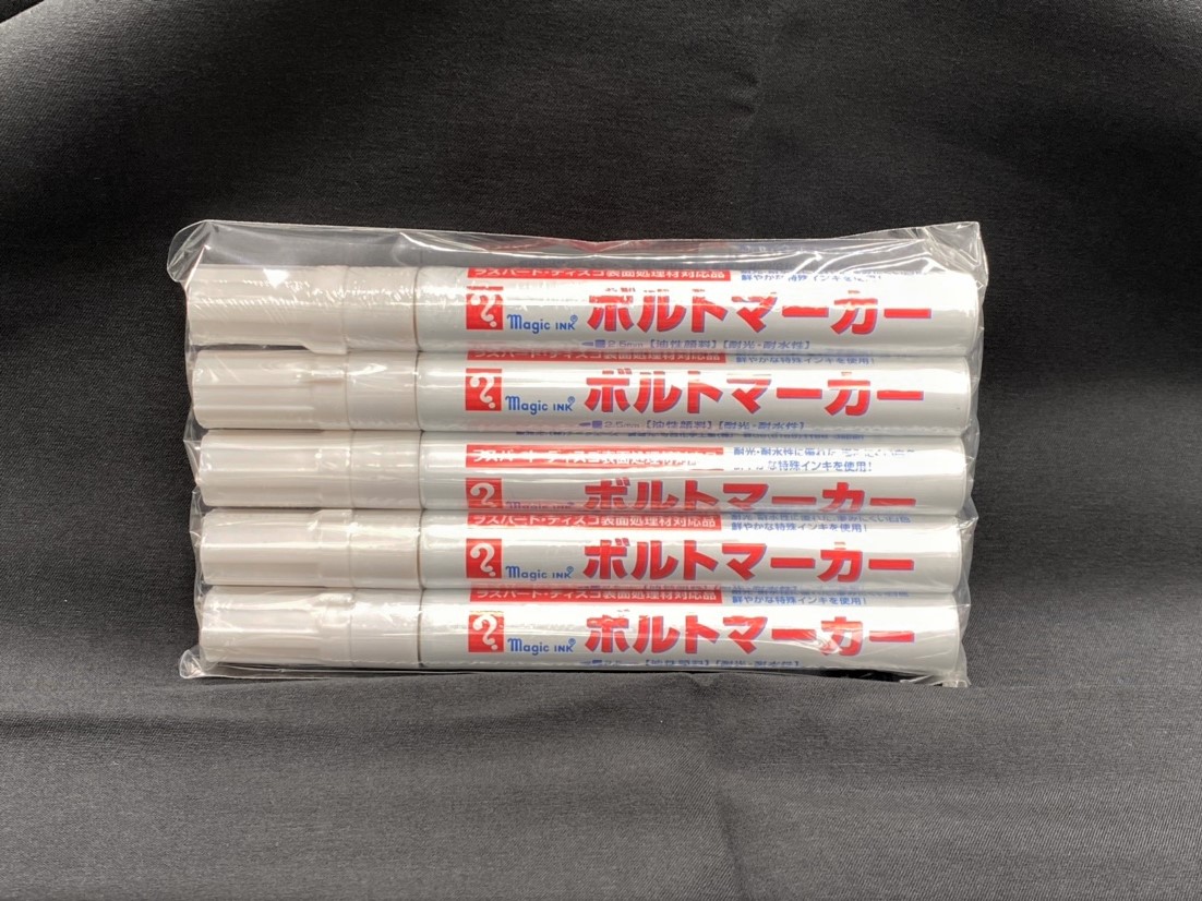 「ボルトマーカー」は様々なボルトにマーキングを行える様、『マジックインキ』で有名な寺西化学工業㈱の全面バックアップにより開発されたラインマーカーです。建築物で使用されているボルトにマーキングする事でボルトにゆるみが無いか簡単にチェックできる様になります。