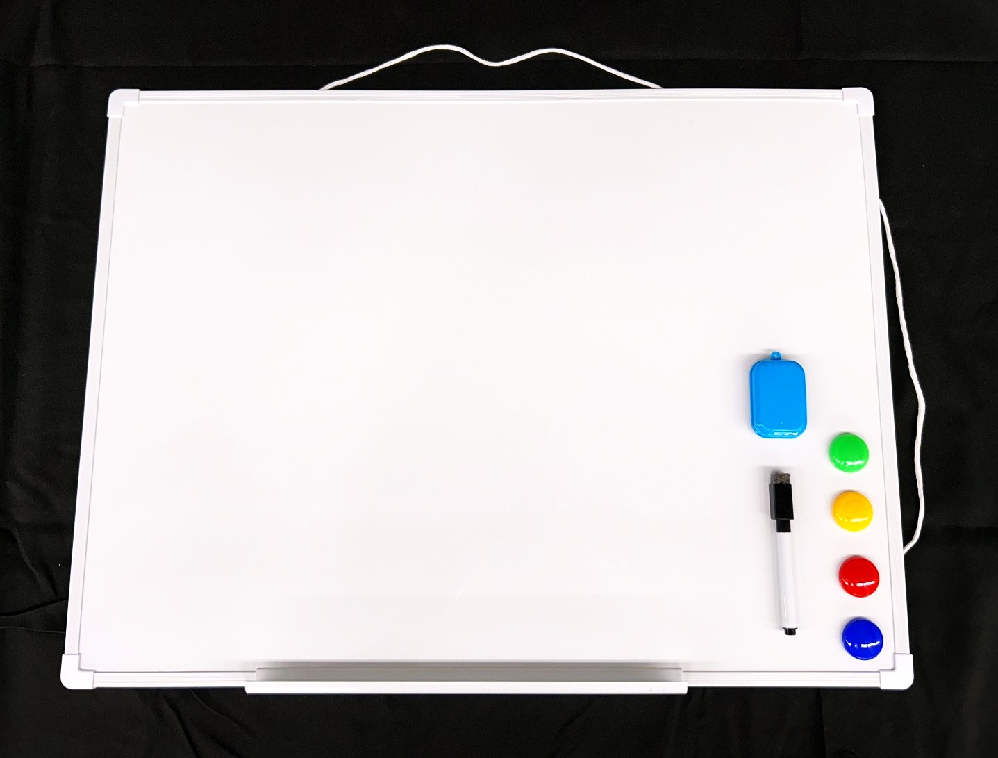 ボード用マーカー(1本/マグネットキャップ付き)・イレーザー(マグネットタイプ)・カラーマグネット(4個)・ペントレー(はめ込み式)が全て付属しているので、到着後すぐにご使用いただけます。