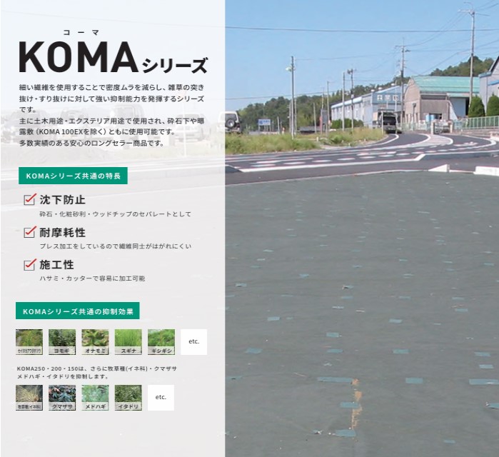 暴露・砕石下用防草シート「KOMA200」 2... 耐久性と防草能力に優れたシート
